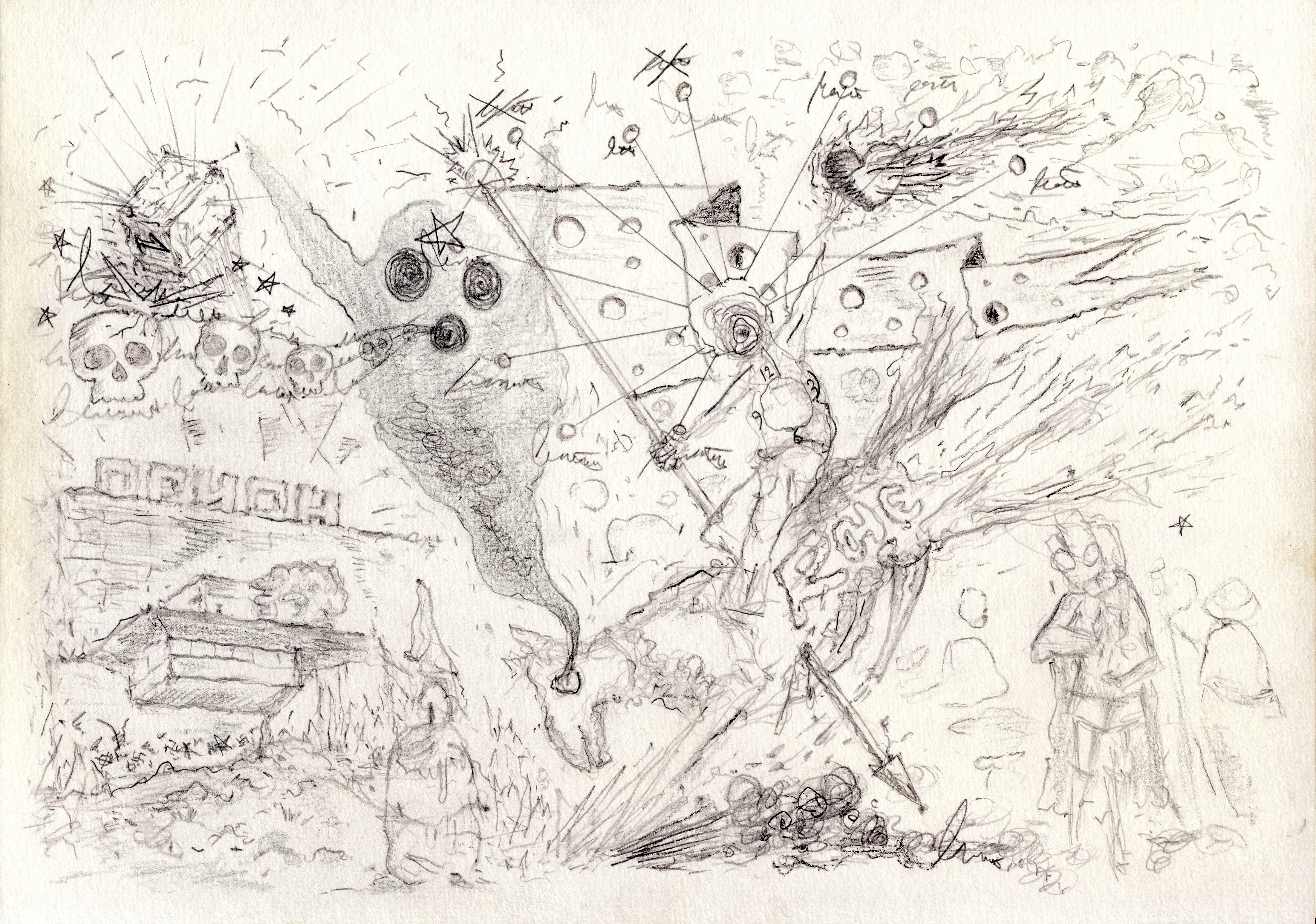 ОРИОН-RꙔЄ, 2025, graphite, colored pencil on 300 g/㎡ cold pressed acid-free paper, 297 × 210 mm