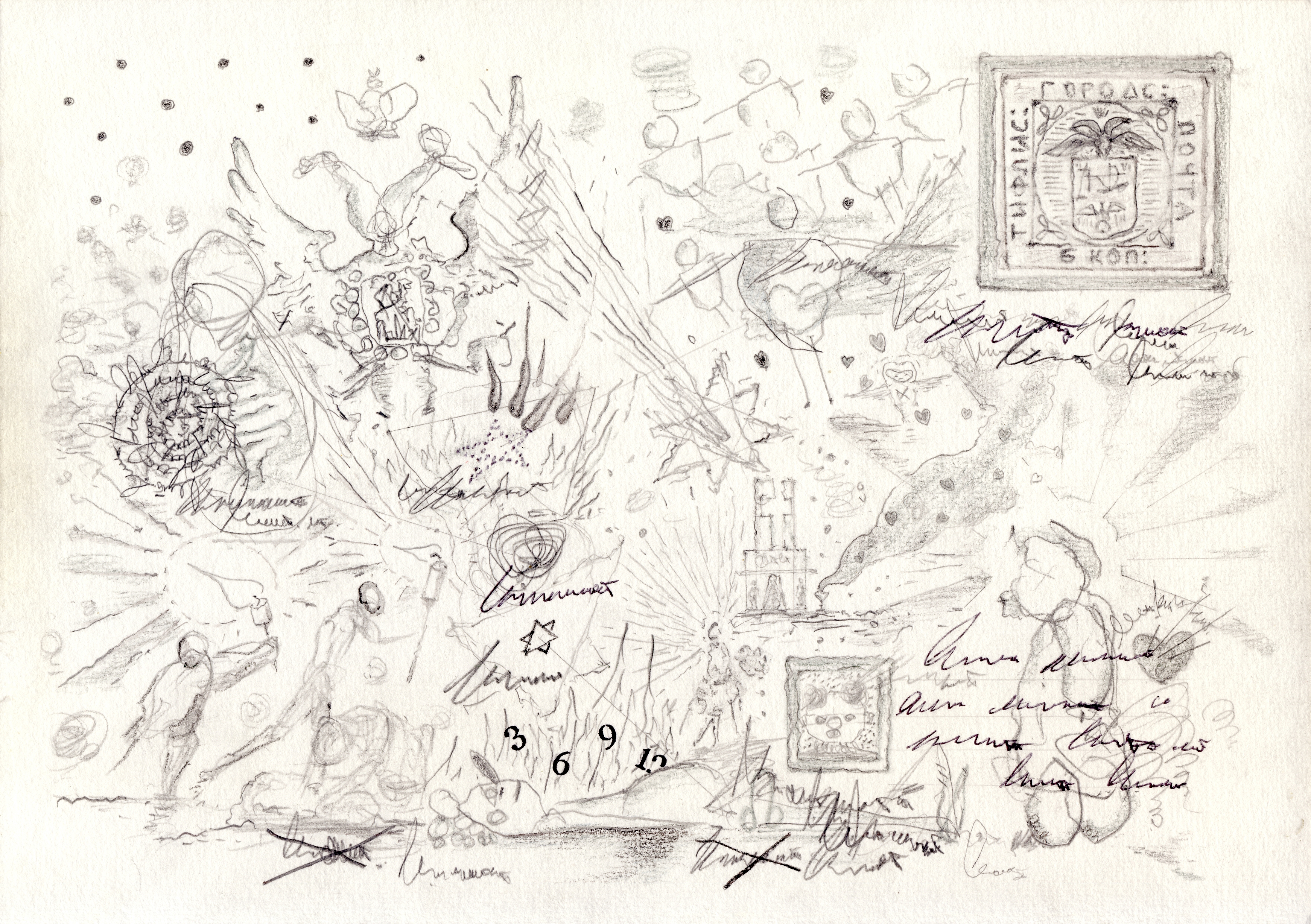 Tiflis Unique, 2025, graphite, colored pencil, ink on 300 g/㎡ cold pressed acid-free paper, 297 × 210 mm