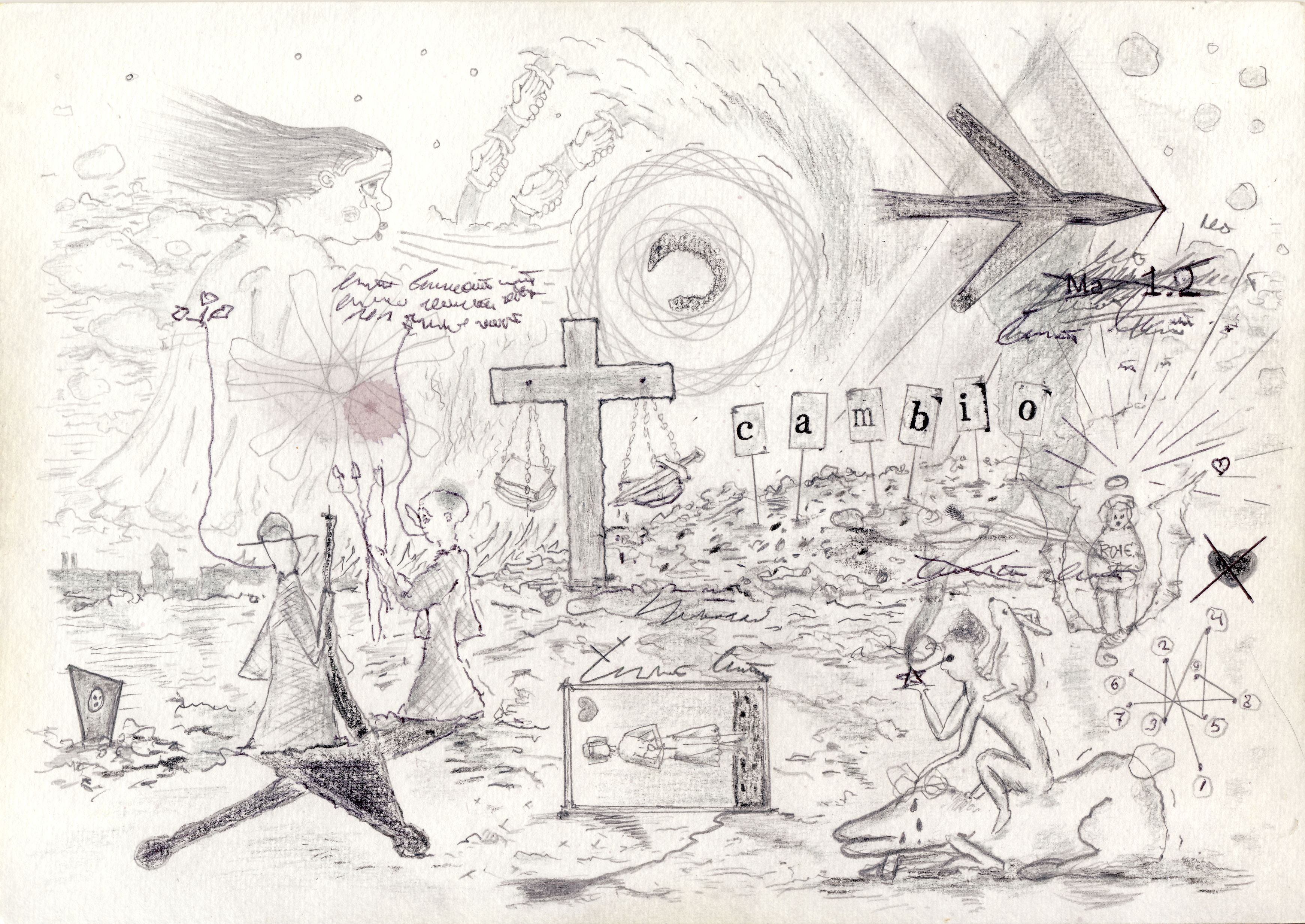 cambio, 2025, graphite, ink, colored pencil on 300 g/㎡ cold pressed acid-free paper, 297 × 210 mm