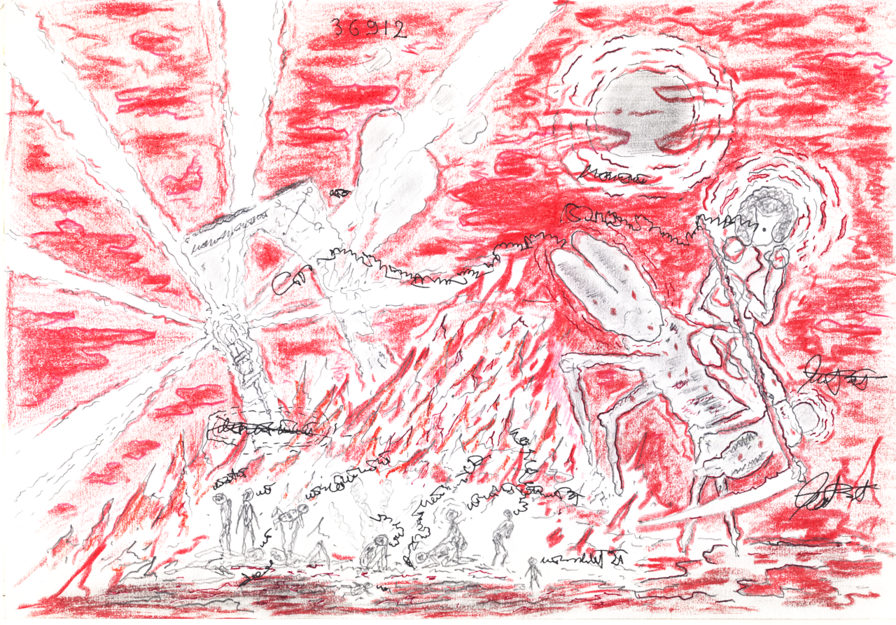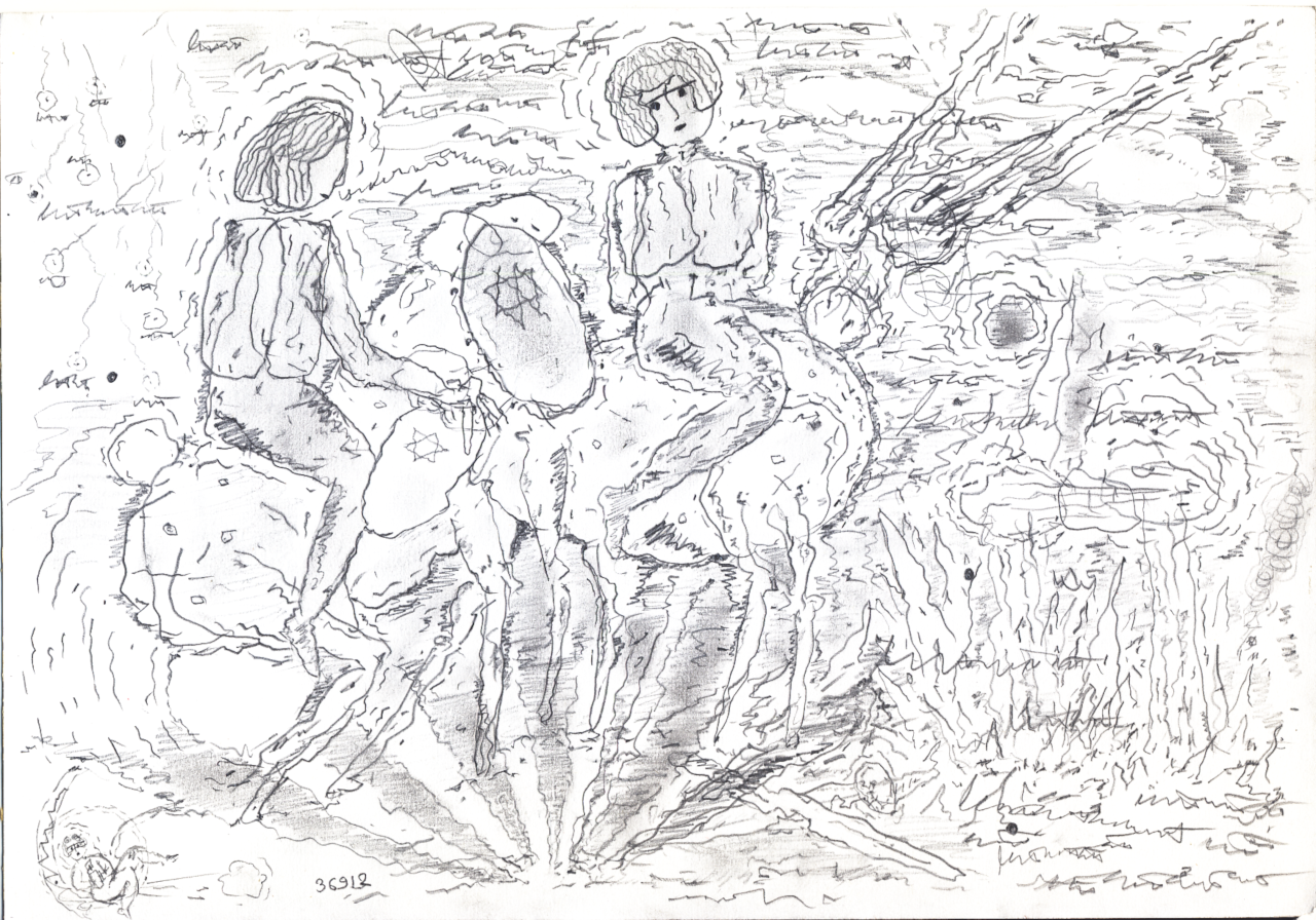 36912, various pencils and inks on archival paper, 300 × 207 mm.