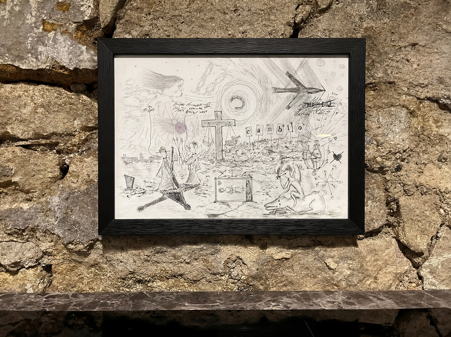 1. cambio, 2025, graphite, ink, colored pencil, red wine on 300 g/㎡ cold pressed acid-free paper, 297 × 210 mm